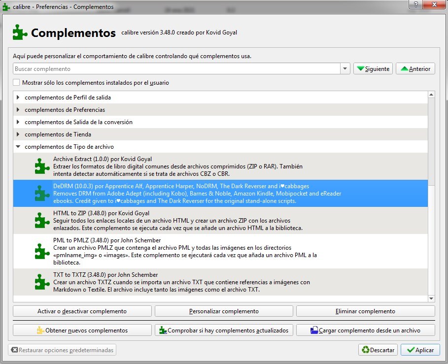 Paso 2 – Descargar e instalar los plugins de DeDRM: