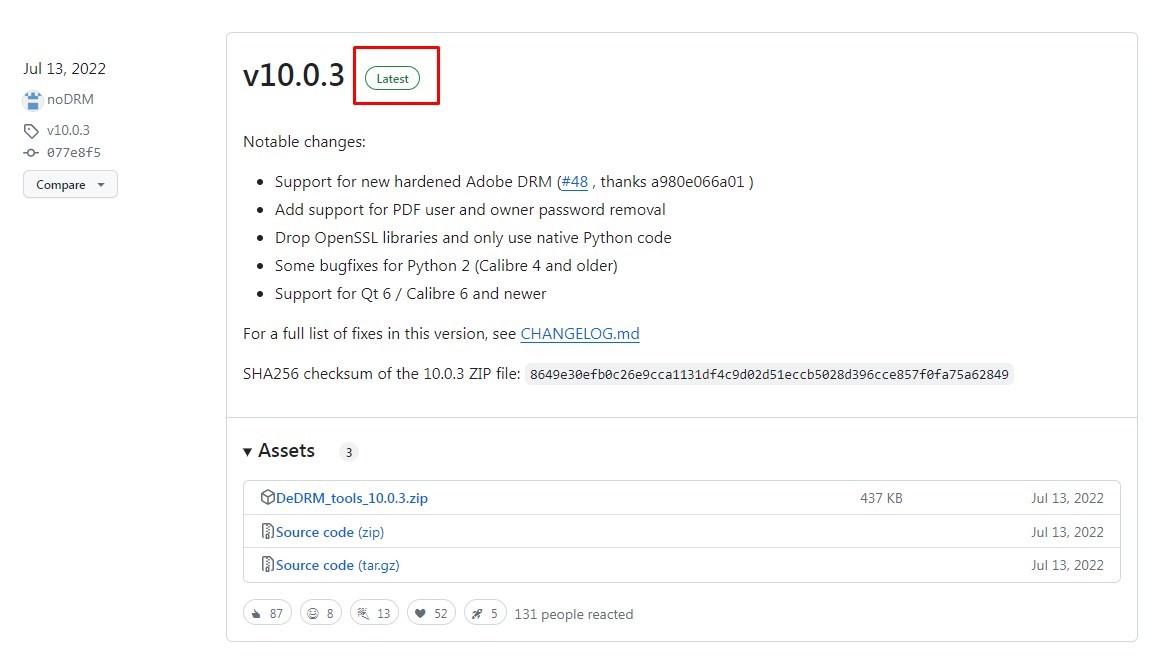 1. Ve al sitio web de DeDRM: https://github.com/noDRM/DeDRM_tools/releases.